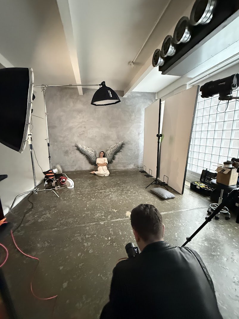 This set up was relatively straightforward - so, you have your key light (a Profoto (@Profoto) head stuffed inside a 4’ Octa) directly above your fantastic model Natasha (@natashalillytrigg). This really brings out the muscle tone, and gives some contrast without it being overpowering. Then you have a XL umbrella camera left for fill, and finally, a gel’d bare bulb head out front, blasting the whole thing with of teal/dark blue-type colour. Easy! The post production (so all that glitching effect) was done by the amazing team at EDIT, and I think it looks just fabulous.