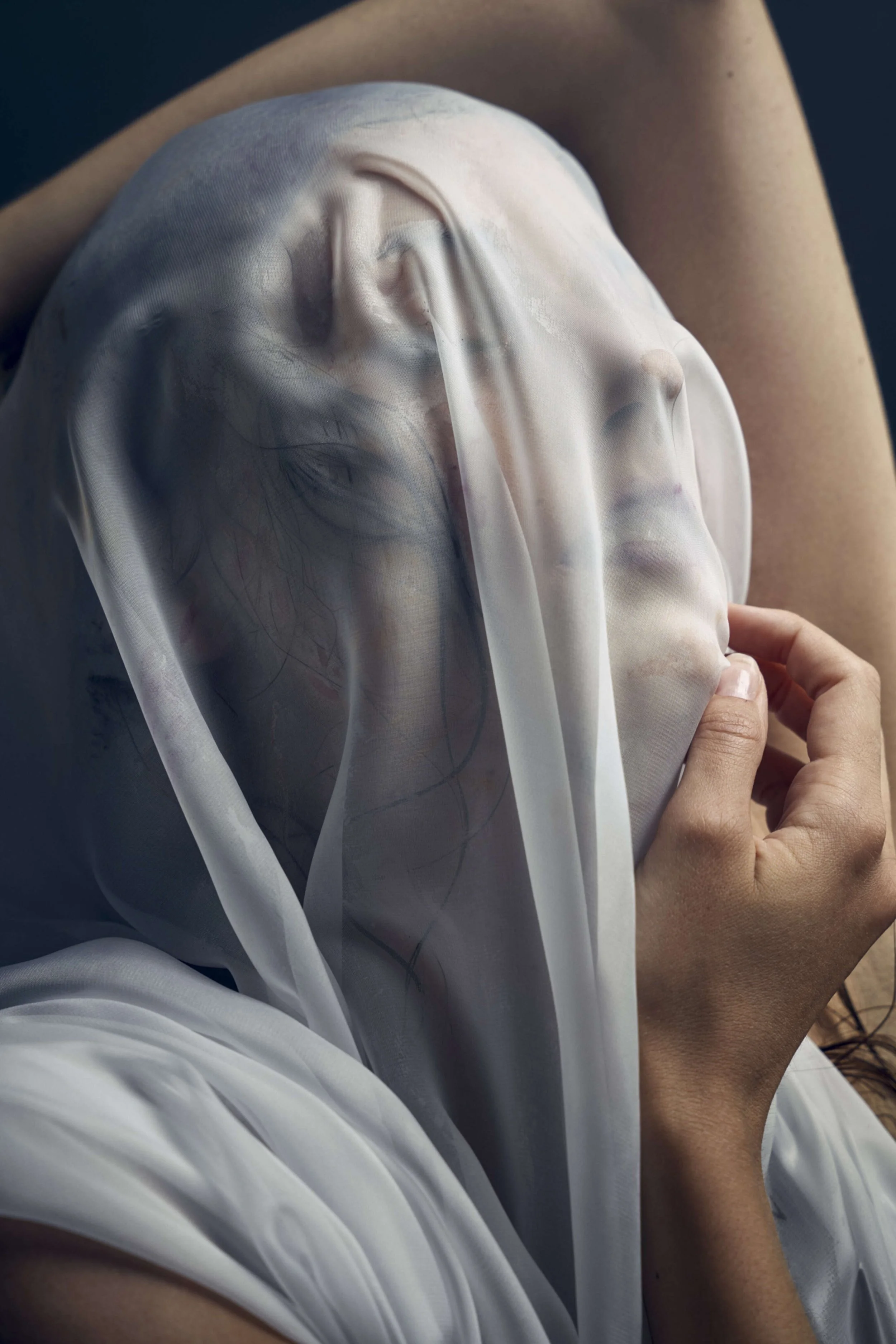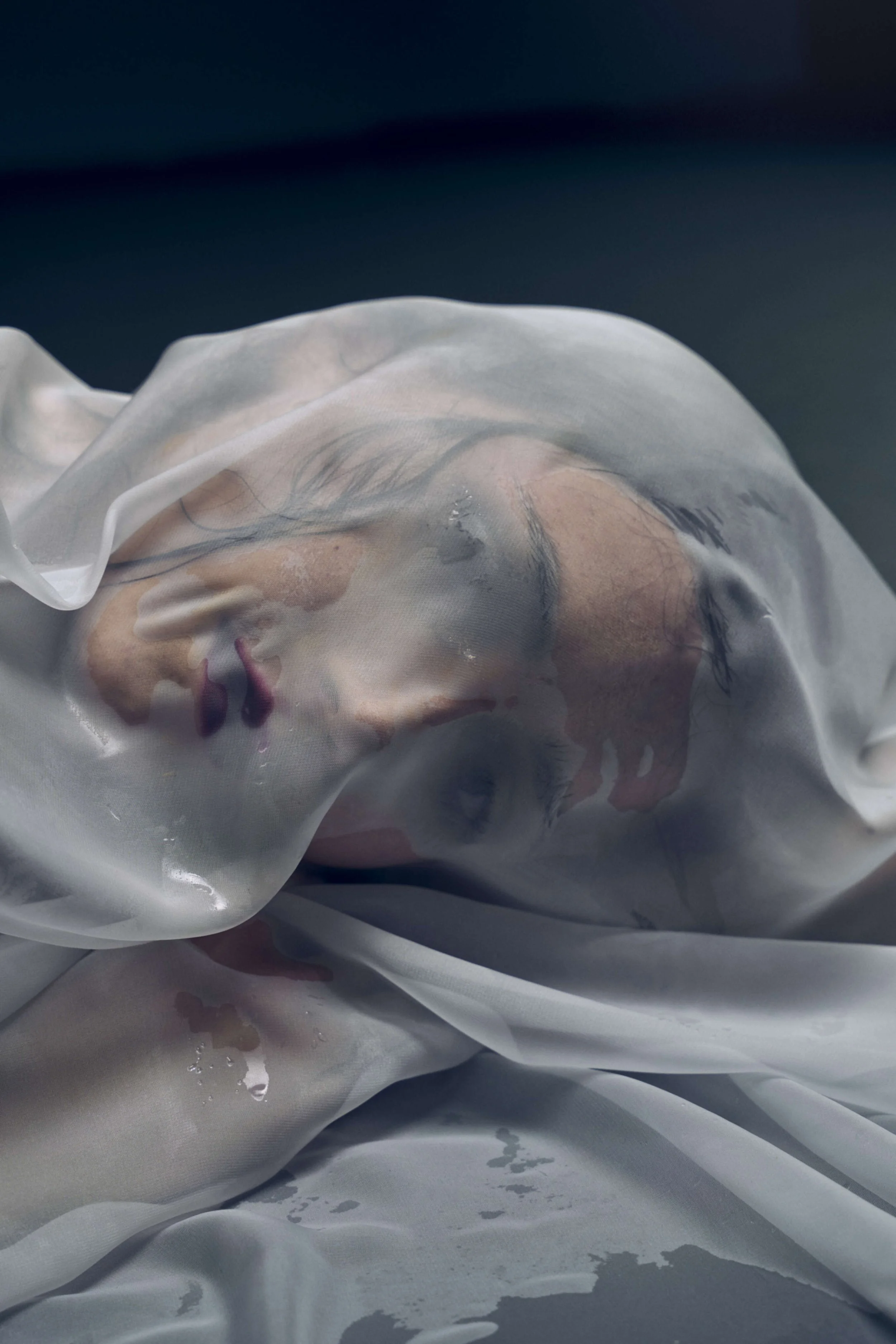 This shot was born out of two pieces of artwork - Erwin Blumenfeld’s ‘Nude Under Wet Silk, Paris’ (c. 1937, left) and Giovanni Strazza’s ‘Veiled Virgin’, (Year unknown, circa 1850s, middle). There’s also a tiny bit of Ridley Scott’s Bladerunner (1982, right) in there!